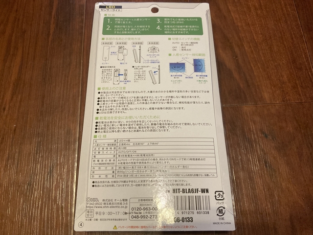 ⇒【楽天市場】オーム電機LED人感センサーライト(NIT-BLA6JF-WN)の価格をチェック